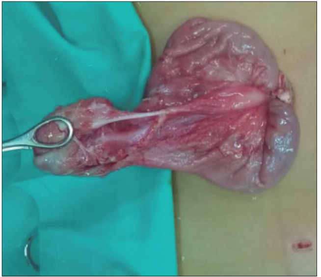 Figuras 5. Resección de fragmento de asa intestinal de aproximadamente 10 cm.