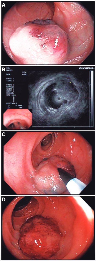 La toma de biopsias de estas lesiones está contraindicada por el alto riesgo de sangrado. La ultrasonografía endoscópica tiene un rol importante en la caracterización y el diagnóstico.6
