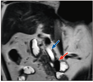 Figura 1. Colangiopancreatografía por resonancia magnética, que muestra un