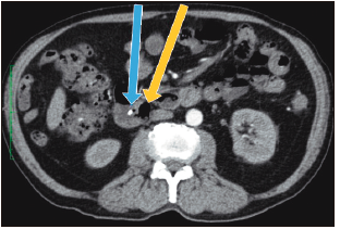 Figura 3. Tomografía abdominal (corte axial): divertículo duodenal periampular