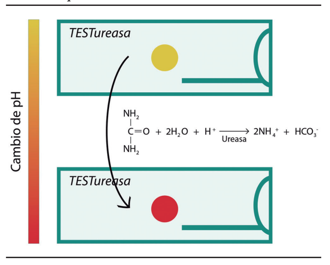Figura 3. Mecanismo de acción de la prueba rápida de ureasa.