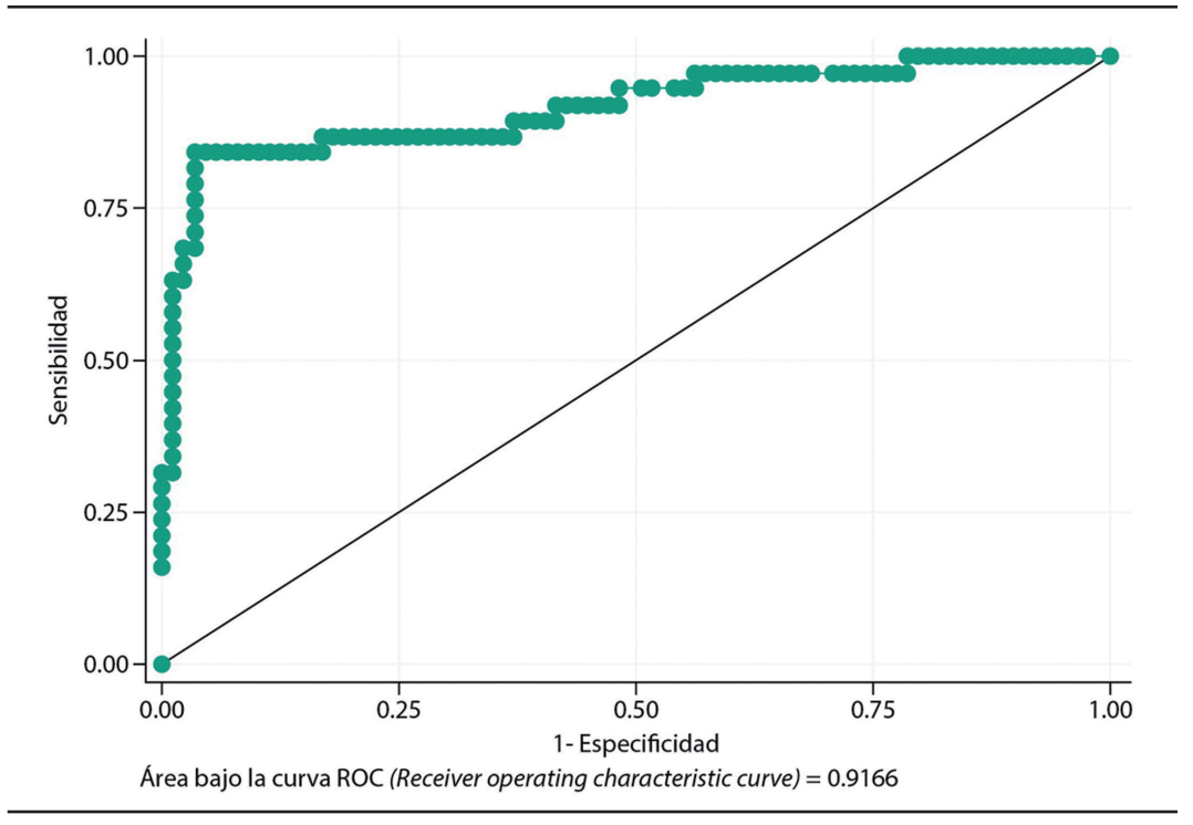 Figura 4. Curva ROC de PCR en tiempo real al compararla con prueba