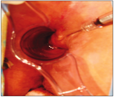 submucosa de sustancias de abultamiento anal. Nótese la aparición de una zona de presión antes ausente