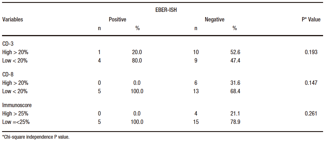 Table 2. Analysis of bivariate of EBER-ISH and pathological clinical characteristics