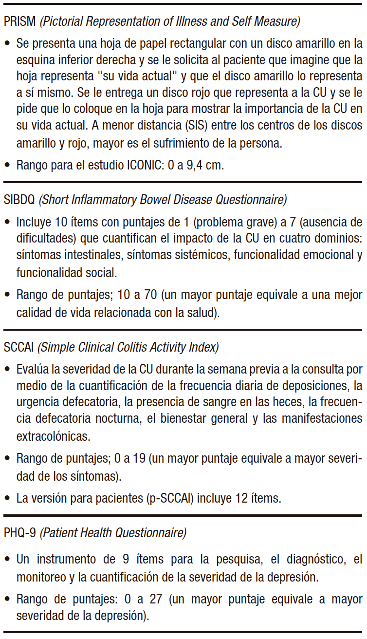 [PHQ-9] y, en las versiones para médicos y pacientes, de la herramienta Simple Clinical Colitis Activity
