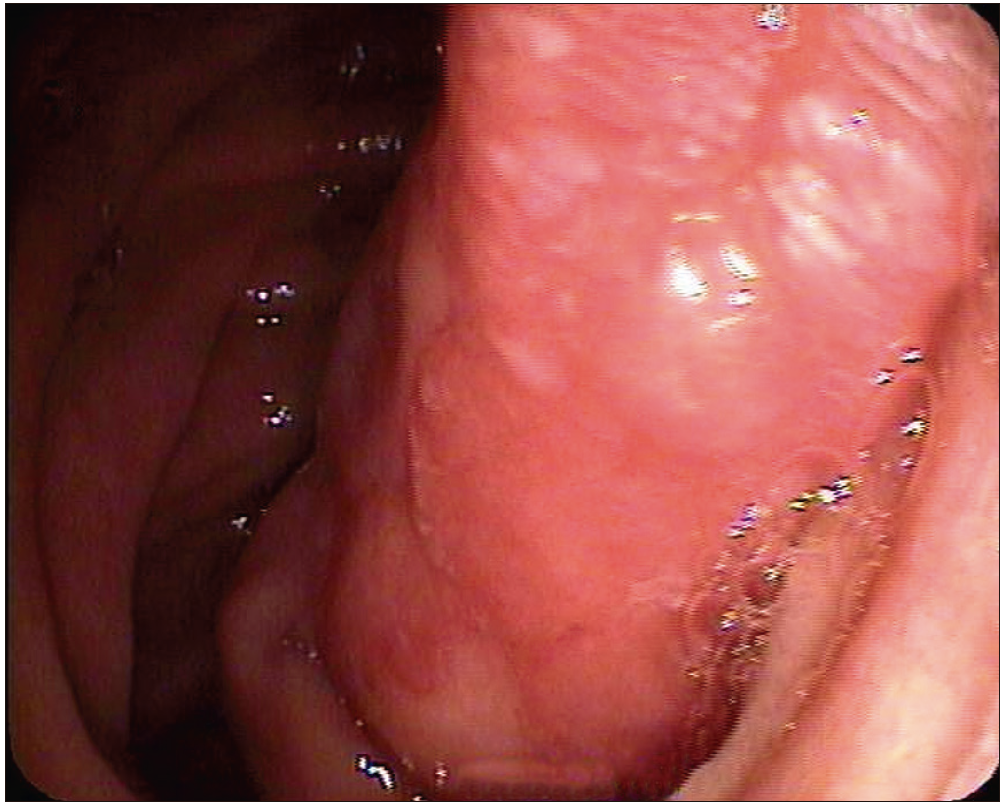 Figura 1. Videoendoscopía digestiva alta. Lesión polipoidea subpediculada de