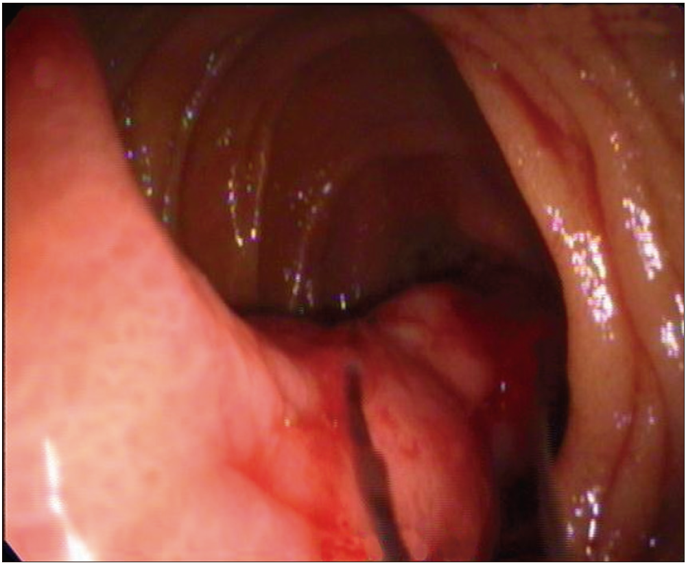 Figura 2. VEDA. Lesión polipoidea subpediculada de aproximadamente 5 cm que emerge