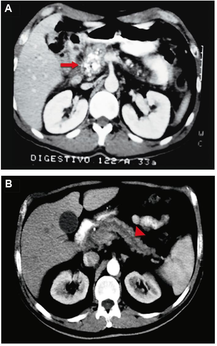 Se indicó la OF en los pacientes con masa a nivel de la cabeza del páncreas y dilatación del conducto de Wirsung mayor de 6 mm, con DA intratable con analgésicos no opioides (Figura 2).