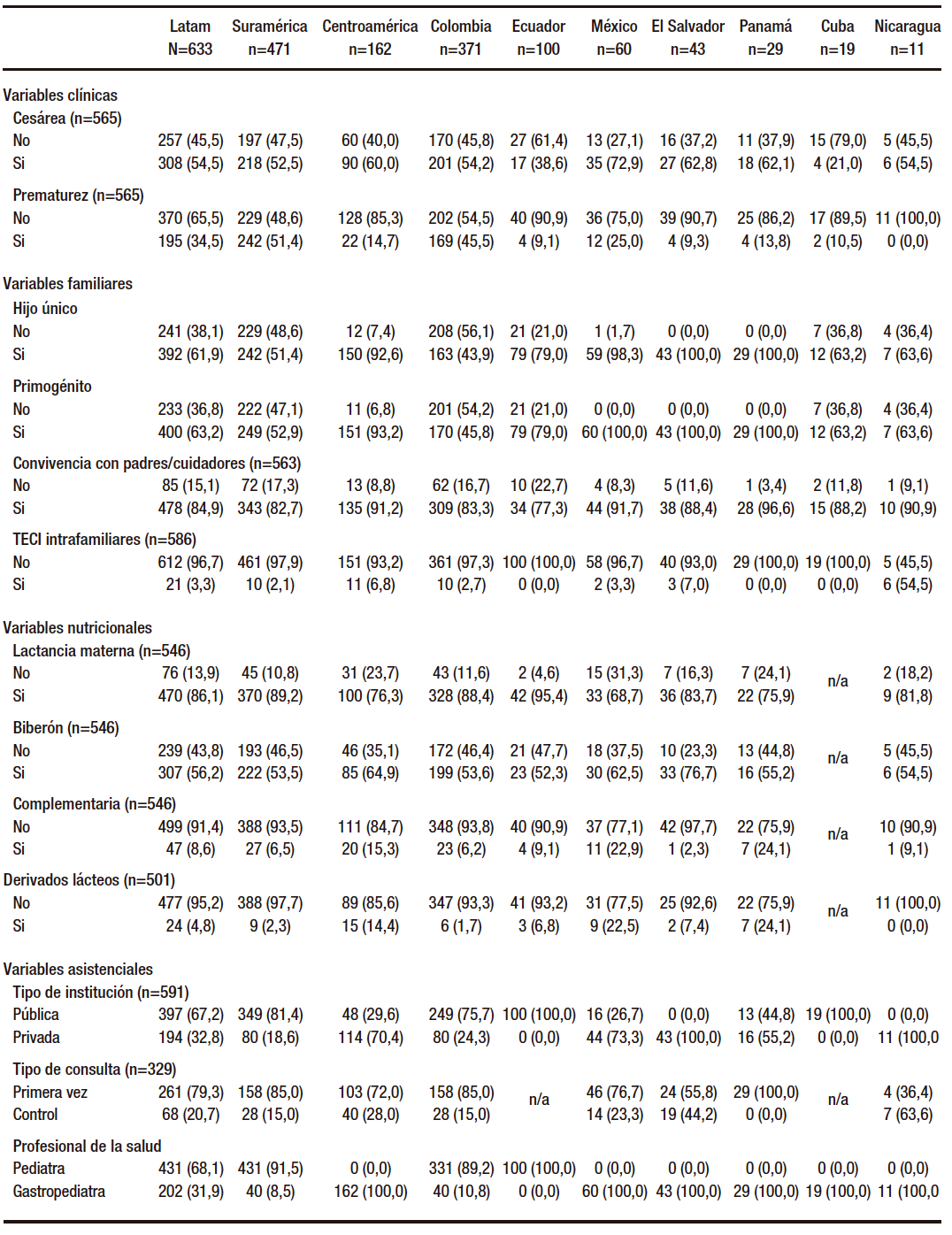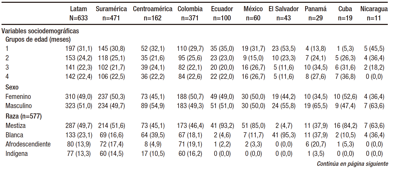 Tabla 1. Características generales de lactantes latinoamericanos menores de 5 meses