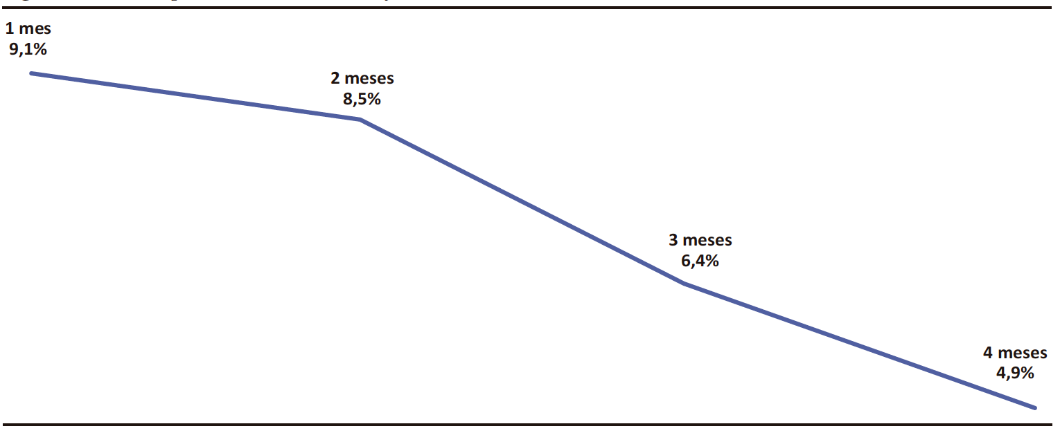 En nuestro estudio, la prevalencia para presentar CI fue del 9,1%; 8,5%; 6,4% y 4,9% a los 1, 2, 3 y 4