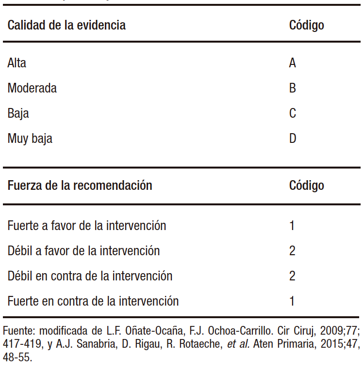 • Nivel de la evidencia y fuerza de la recomendación GRADE: D2 débil a favor del enunciado.