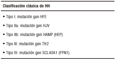 Tabla 1. Hemocromatosis. Clasificación