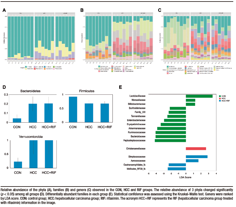 Figure 2. Changes in gut microbiota in CON, HCC, and RIF