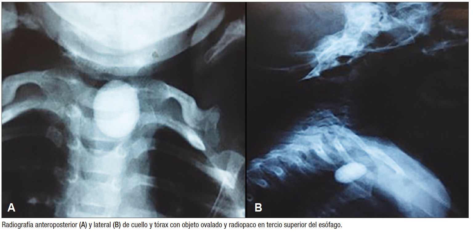 Todo paciente con sospecha de ingesta de cuerpo extraño debe ser referido a un servicio de urgencias para su valoración primaria y la solicitud de radiografías anteroposterior y lateral de cuello, tórax, abdomen y pelvis, así como tomografía computada en caso de sospecha de complicaciones o si se sospecha la ingesta de un objeto radiolúcido.2