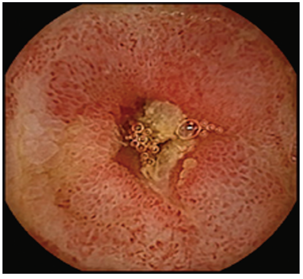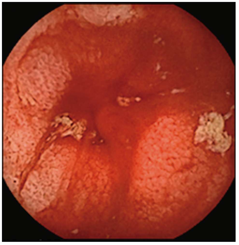 La apariencia endoscópica de la GNM intestinal depende de la naturaleza focal o difusa de las lesiones. A medida que las lesiones se profundizan en el epitelio, se manifiestan como masas subepiteliales únicas o múltiples de tamaño y distribución variable.15 Los cambios en la inervación de la pared intestinal debido a la hiperplasia del plexo mientérico y otras estructuras del sistema nervioso autónomo, determinan cambios segmentarios de la contracción intestinal, dando lugar a un aspecto tubular de la luz.7