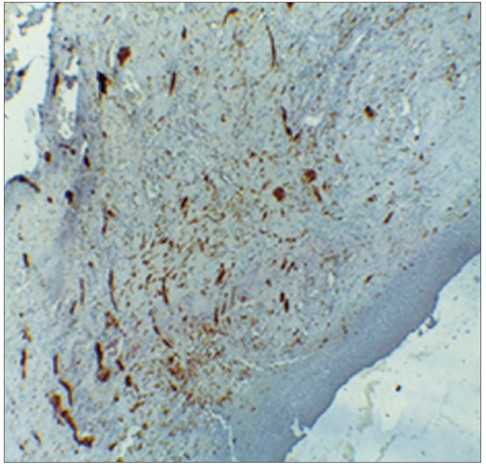 Figura 6. Prueba de inmunohistoquímica que muestra intensa expresión difusa de