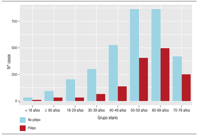 Figura 1. Frecuencia de pólipos colorrectales según los distintos grupos etarios (p