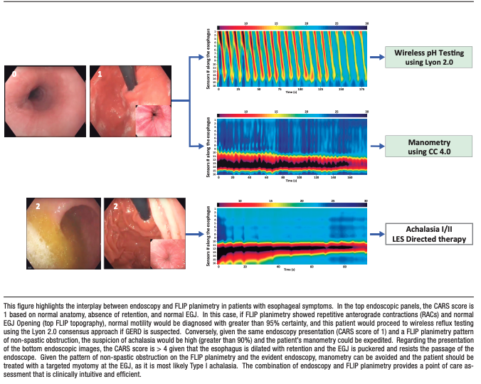 Keywords. Index endoscopy, FLIP planimetry, esophageal motility disorders, wireless pH monitoring, Clinical Achalasia Risk Score, gastroesophageal reflux disease, eosinophilic esophagitis, esophagogastric junction, high-resolution manometry, dysphagia.